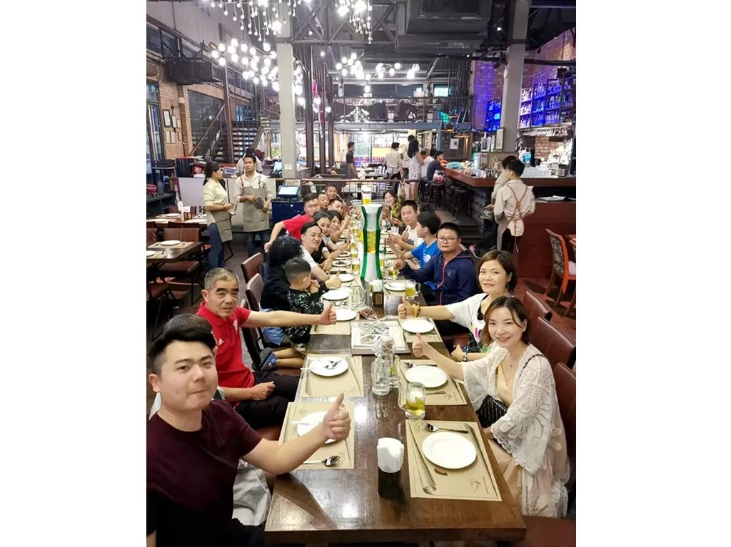△贺磊和同事们欢乐聚餐。