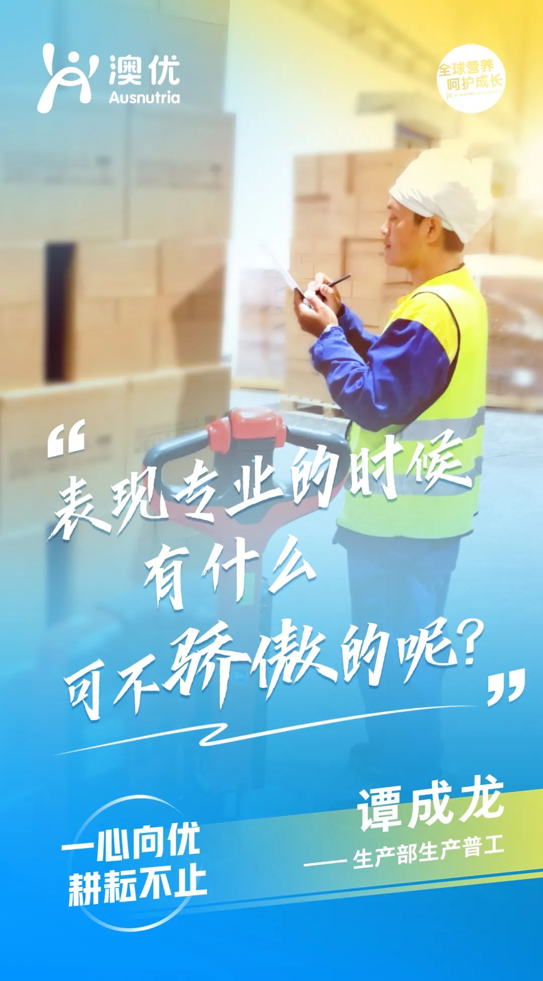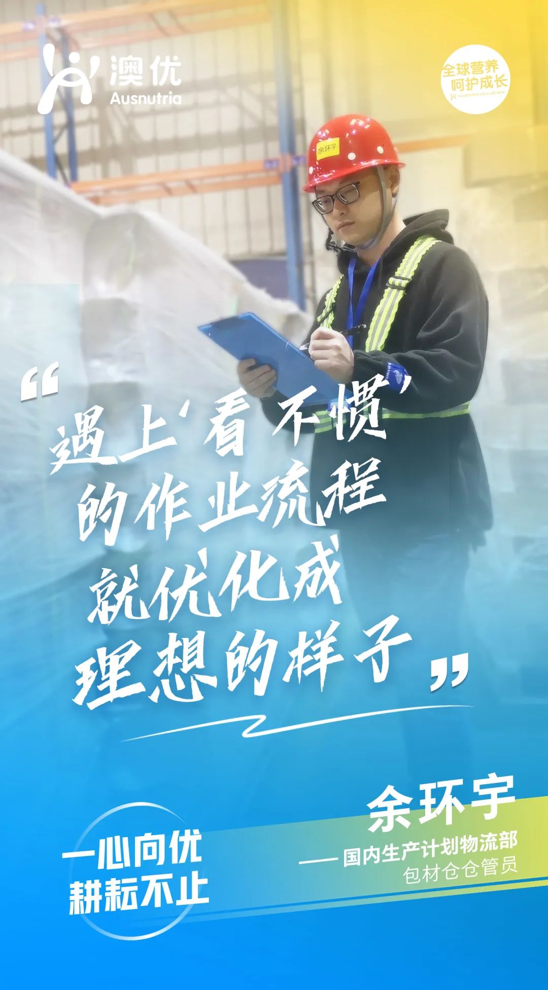 不仅要做得对,还要做得更好,是余环宇工作的写照,也是澳优人持续的追求。