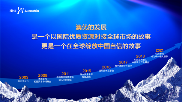 澳优的发展,是一个以国际优质资源对接全球市场的故事,更是一个在全球绽放中国自信的故事。澳优于2003年在没有奶源优势的湖南长沙成立,通过“走出去”整合全球优质资源,实现了差异化的“曲线”发展。2009年,澳优在香港联交所上市,而后开启了更深一步的国际化发展的征程。在这个过程中,我们完成了3次大型的海外并购,以及一系列的海外建设投资、海外市场战略,形成了公司现在的国际化布局。记得澳优收购澳洲专业高端营养品品牌Nutrition Care的时候,它的创始人Ian Brighthope教授是澳洲营养业界的一位传奇人物,他对于营养科学的兴趣,远在对于赚钱的兴趣之上,所以,曾经有几个大公司提出并购他的公司,都被教授回绝。但是,教授最后选择了和我们澳优一起来共同谱写他的营养健康梦。为什么呢?后来Ian Brighthope教授告诉我们,这是因为澳优以为消费者提供更优营养的企业愿景,对产品精益求精的企业精神,“将客户价值放到企业利益之上”的企业情怀,以及对产品、服务美学的追求深深地吸引了他。以人为本、兼济天下,其实这些都是我们先人给我们留下来的宝贵思想,我们只是恪守先辈的教诲做了一些小事情,但这些事情,往往更能成为在海外传播中国商人美誉度的美好故事。