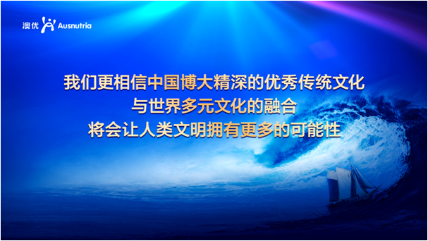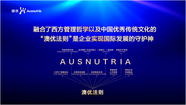 很多人问我们,如此大范围、深层次的国际化品牌运作,澳优如何保持自己的航道?以刚才的小故事为例,总结来说,在这个发展过程中最重要的一点,即对ONE AUSNUTRIA澳优文化的践行。澳优企业文化一直是护佑我们发展的内核,而澳优文化体系的核心规则——“澳优法则”就是融合了中华文化精华以及西方管理哲学而形成的一套思想和行为准则。从对中华文化的深度理解,到多元文化的兼收并蓄,澳优文化正在推动澳优品牌成为全球消费者的信任之选。