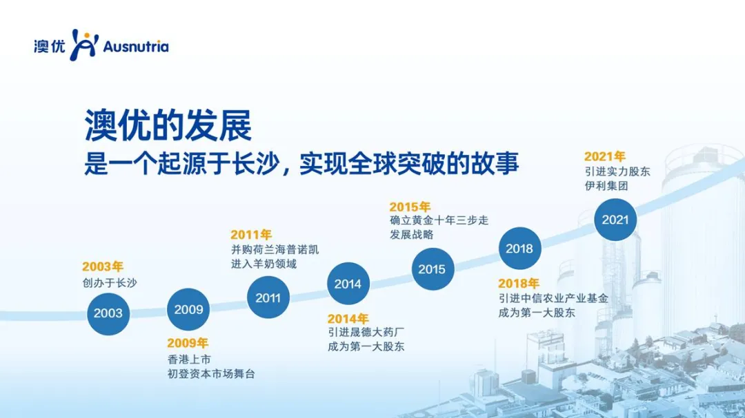 颜卫彬董事长以澳优的发展为例,分享了如何实现增长的一些经验。他介绍道,澳优的发展是一个起源于长沙,不断在全球实现突破的故事。澳优初创之时,湖南草场缺乏,高湿环境,本地难以提供稳定的优质乳源,于是公司将乳源布局到全球黄金奶源带,整合全球资源,服务全球市场,并以差异化、高端化的商业模式巩固了澳优在行业与市场的领先地位。如今,澳优在全球建立了 9 家工厂,产品足迹遍布全球 60 余个国家和地区。