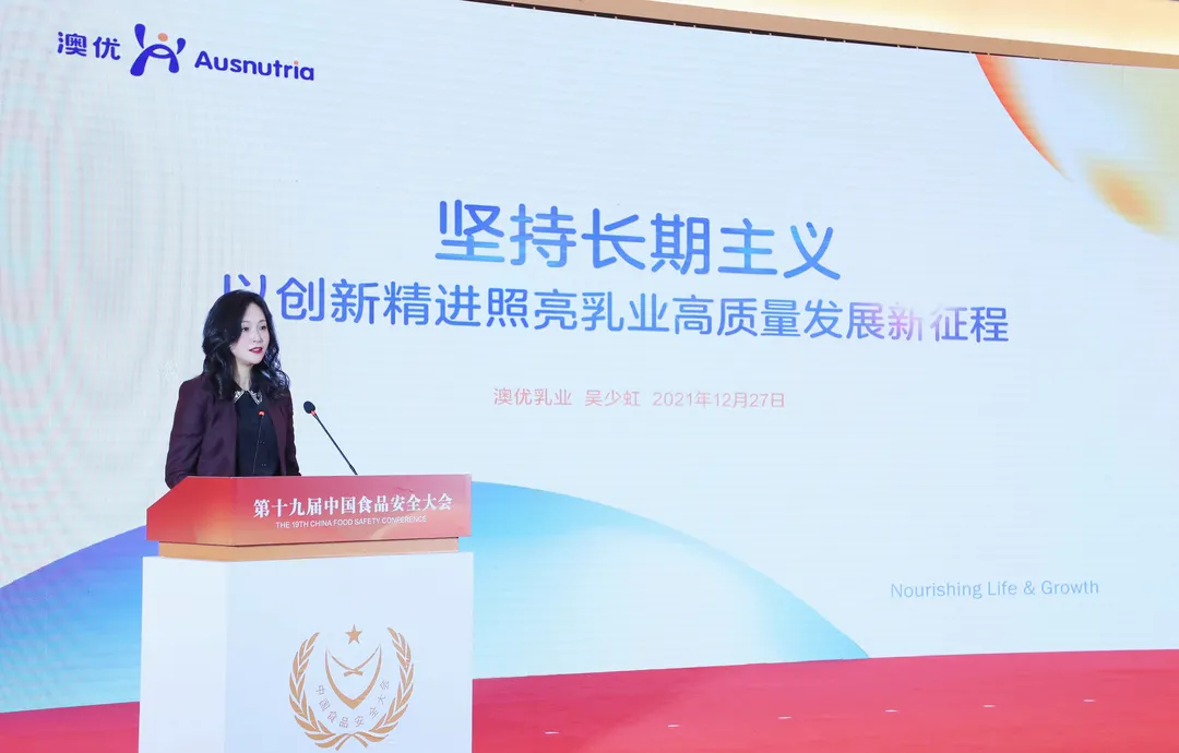 12月26日-27日,由教育部、生态环境部、农业农村部、海关总署、国家市场监督管理总局、国家林业和草原局、中国食品工业协会联合举办,中国食品安全报社、四川省眉山市人民政府联合承办的“第十九届中国食品安全大会”在北京召开。澳优执行董事吴少虹作为食品安全企业代表受邀出席大会并作主题演讲。