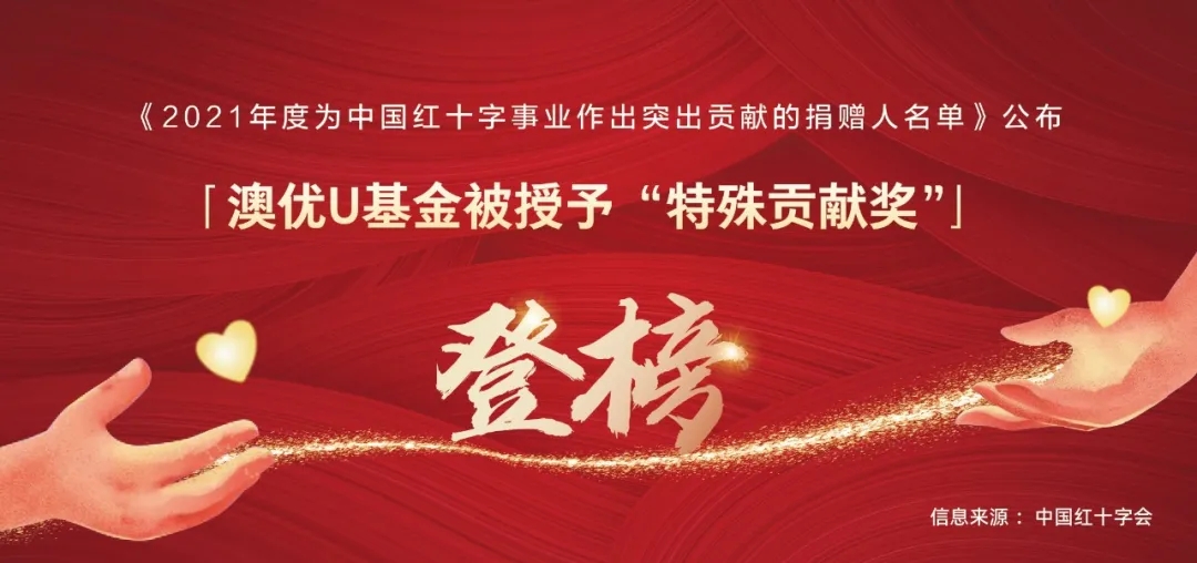 近日,中国红十字会总会公布了《2021年度为中国红十字事业作出突出贡献的捐赠人名单》。凭借在公益慈善领域的持续实践,澳优公益慈善基金会(简称“澳优U基金”)被授予“特殊贡献奖”。