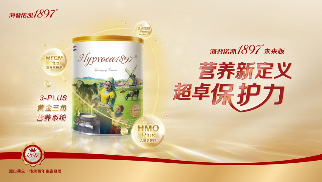 随着中国人均可支配收入持续增长,母婴产品月消费金额达到3456元。预计到2025年,婴幼儿奶粉销售额将达到1870.77亿元,这也为高端奶粉在中国婴幼儿奶粉行业持续深入提供了更大的发展空间。HMO,也叫母乳低聚糖,作为母乳中第一大活性营养成分,有助于婴幼儿肠道菌群的构建、大脑发育、抗感染、免疫调节及体内信号传导等,能够激发婴幼儿自身保护力。市场对更高品质、更强技术的需求催生了HMO成分奶粉的快速增长。根据Future Market Insights 发布的一份报告显示,预计2017年至2027年,全球HMO市场复合增长率将达到14.6%,市场估值将超过7600万美元。HMO奶粉或将成为超高端奶粉消费的又一增长点。HMO的研究早在上世纪50年代后期就已开始,2014年纳入了临床试验并率先被欧洲、美国等许多国家和地区批准。海普诺凯1897深刻洞察了新生代妈妈的喂养痛点,提前布局HMO细分赛道。近年来依托澳优“1+6+N”全球研发体系,联合200多位母乳营养研究领域博士、专家,坚持在母乳多样性、母乳微观化方向上深入研究,不仅攻克了HMO结构还原的技术难题,更创新了成分组合与科学配比,全新推出了海普诺凯1897“未来版”。 “未来版”不仅体现了海普诺凯1897对HMO市场发展的充分信心,也表达了海普诺凯1897守护中国婴幼儿成长未来的不变初心。“未来版”突破性集齐了HMO、乳铁蛋白、乳脂球膜三大臻稀成分,通过科学含量配比与精粹提炼,打造出独特的“黄金三角营养系统”,能够有效激发婴幼儿内在抵抗力。此外,更添加了六大亲体营养和25种以上的维生素矿物质,让婴幼儿在保护力之上更有全面营养。