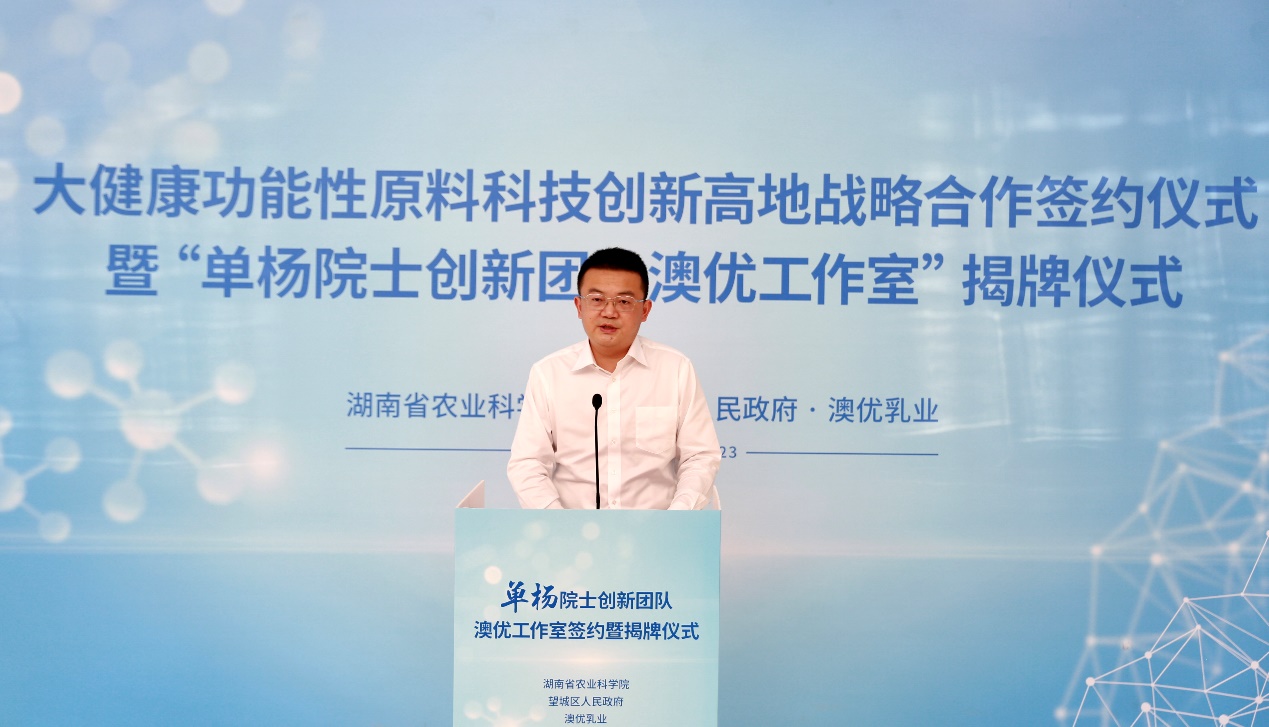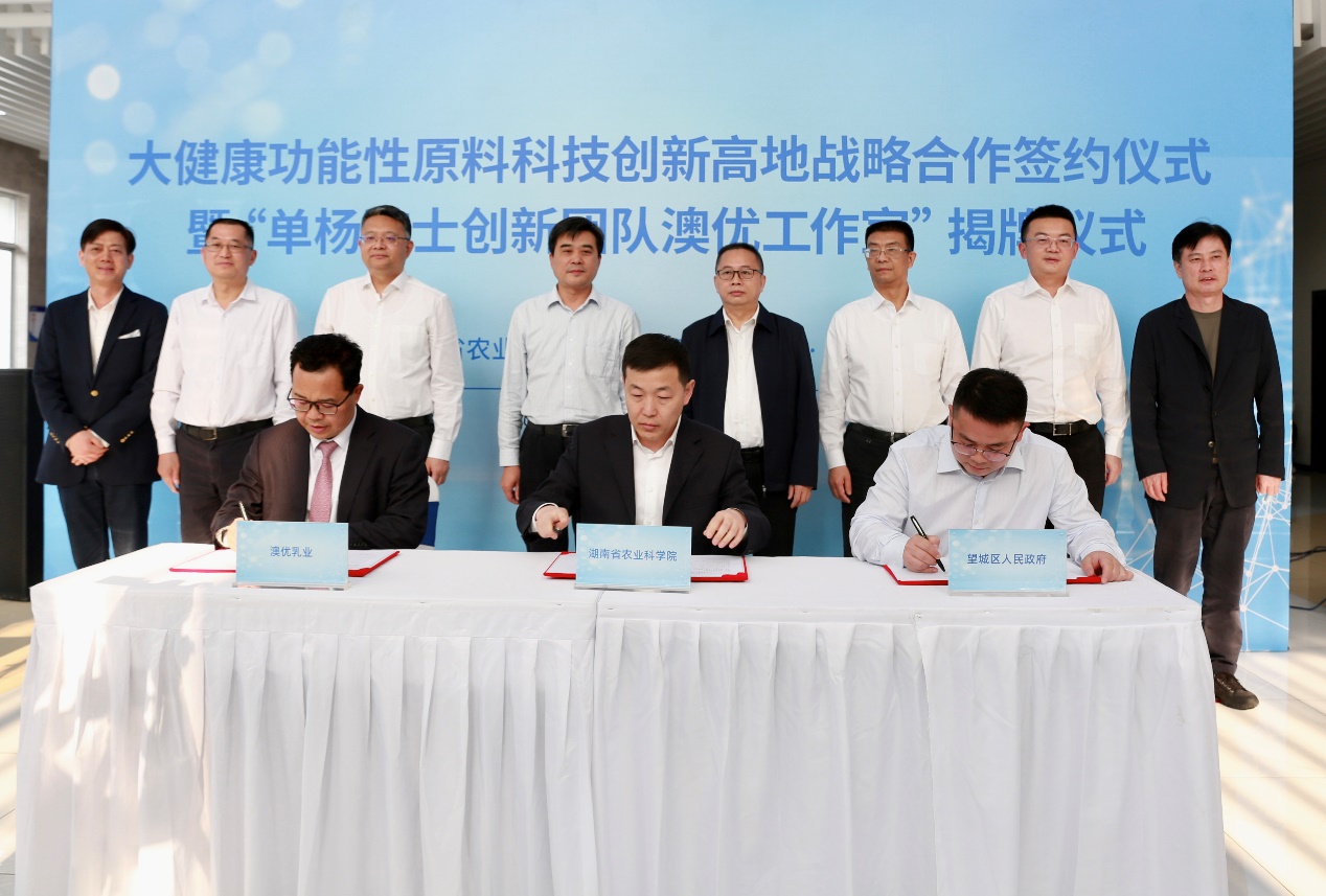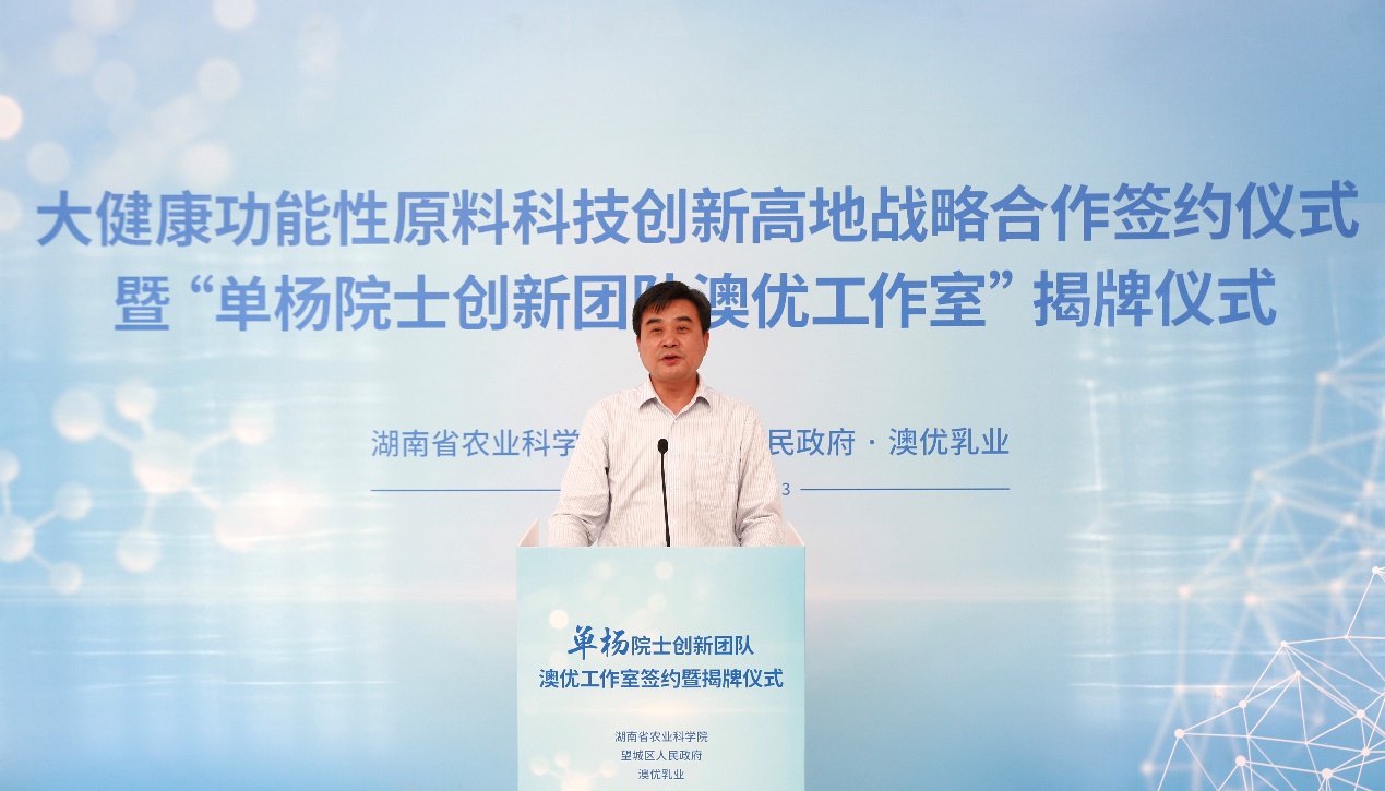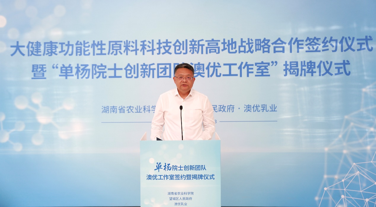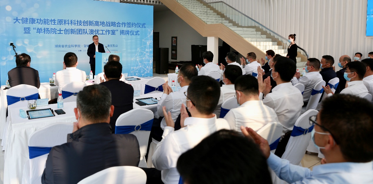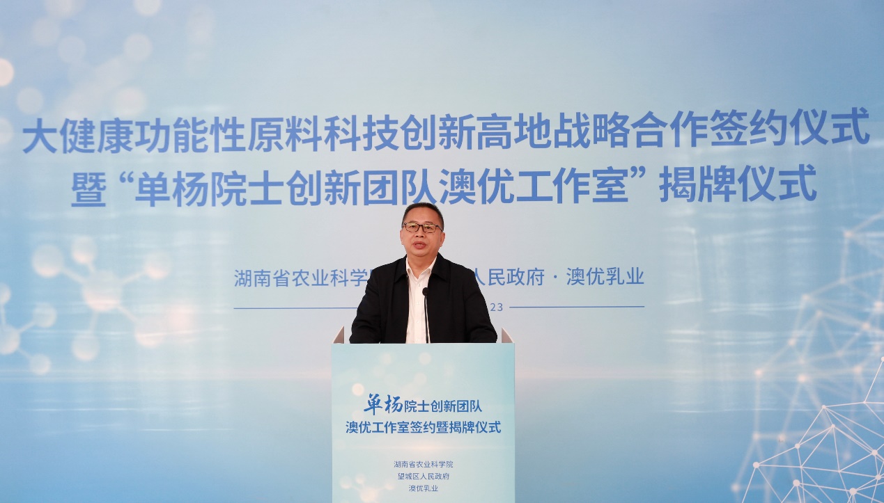 出席此次活动的中国工程院院士、湖南省农业科学院党委书记柏连阳对湖南省各级政府长期以来为省农科院科研成果培育、科技人才成长给予的支持表示感谢。“澳优秉承‘汇聚全球优质营养与智慧,让成长与健康更加美好’的理念与单杨院士创新团队的科研工作使命深度契合,双方的合作必将产生强大的协同创新合力,取得丰硕的研究成果及产业效能。湖南农业科学院将对单杨院士创新团队澳优工作室的运行发展提供力所能及的支持保障,推进双方深度融合发展,让营养更美好,让人民更健康。”柏连阳院士在签约仪式上指出。