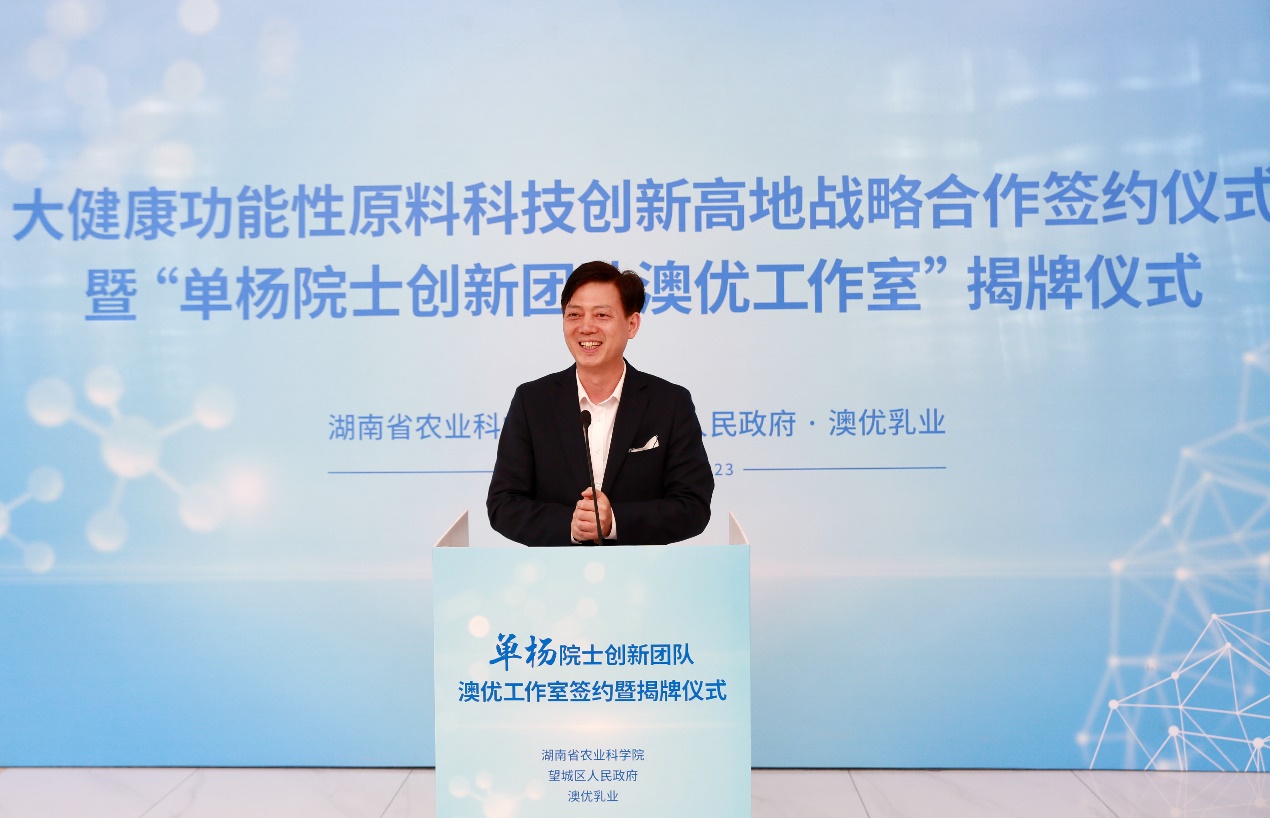 中国工程院院士、湖南省农业科学院院长单杨是国家“万人计划”科技创新领军人才和农业农村部“科研杰出人才”、科技部重点领域创新团队负责人、食品工程专家,长期从事食品工程科技研究,曾获国家科技进步二等奖等多项荣誉。单杨院士表示,接下来,工作室将统筹整合各方优势资源,聚集大健康领域食品科学、生物学等产业发展中的关键技术问题,利用澳优科研全球化、人才全球化、市场全球化等方面的优势,努力为长沙大健康产业发展提供前瞻性、战略性指导意见,促进各方在科学研究、创新创业、人才培养、成果落地等领域实现共同发展。