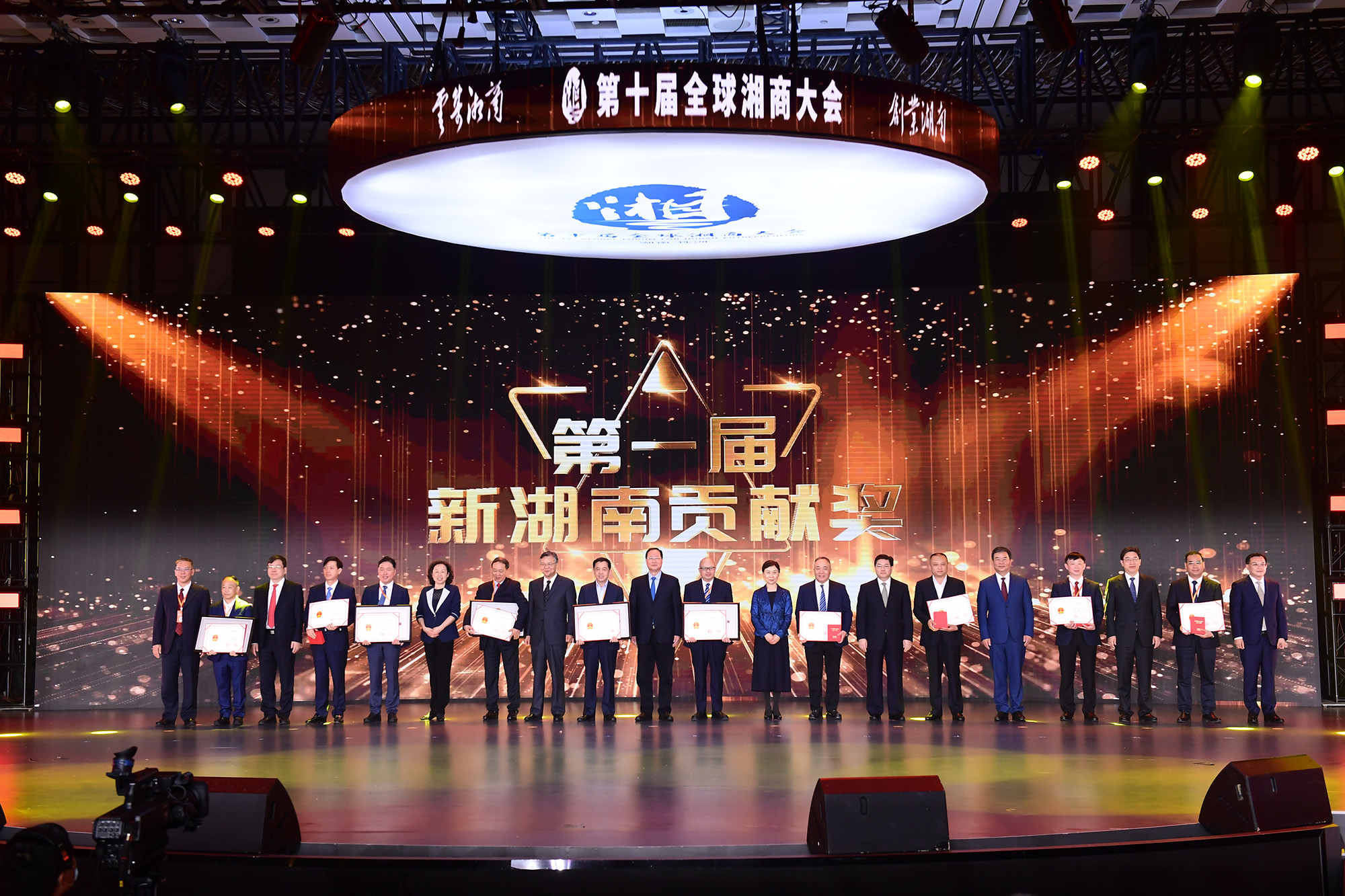 △澳优董事长颜卫彬(左四)被授予第一届“新湖南贡献奖先进个人”荣誉称号。(摄影/李崧稷 )