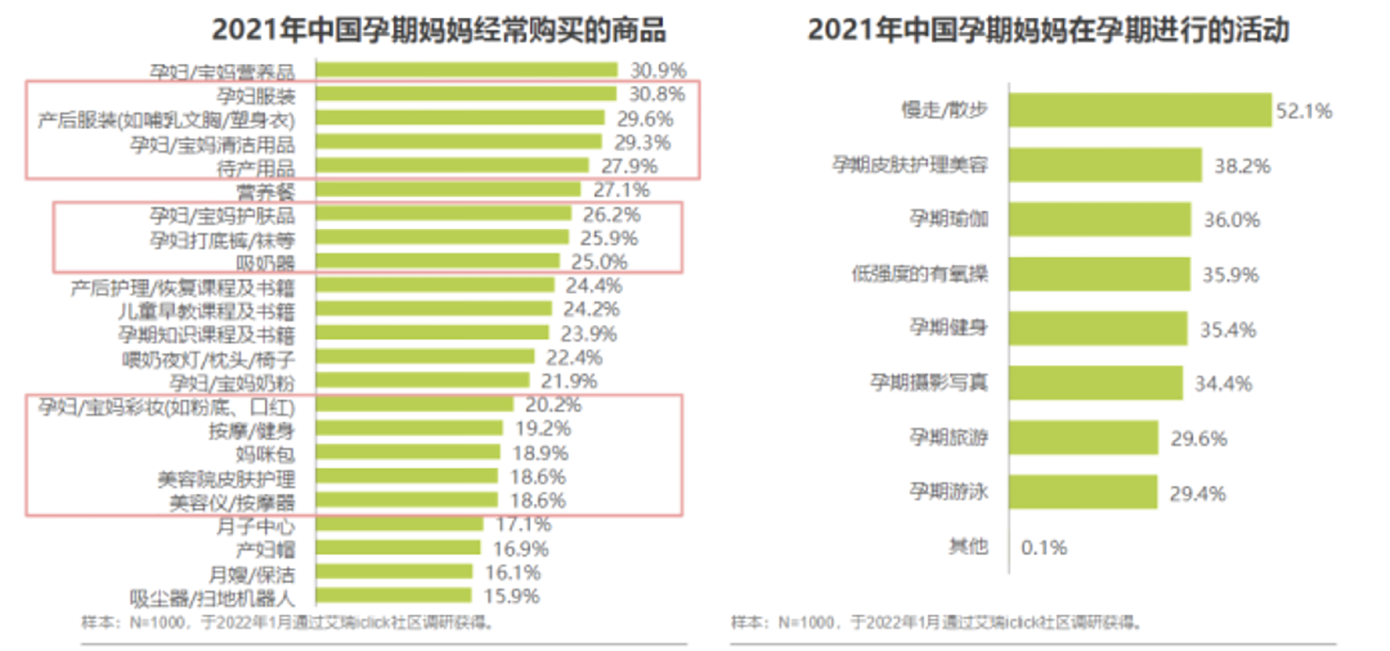 根据艾瑞咨询3月最新发布的《2022年中国母婴行业研究报告》显示,与之前传统认知的孕妈不同,90后、95后新生代孕妈对自身越来越关注,即使怀孕生娃,也依然精致、爱美、享受生活。