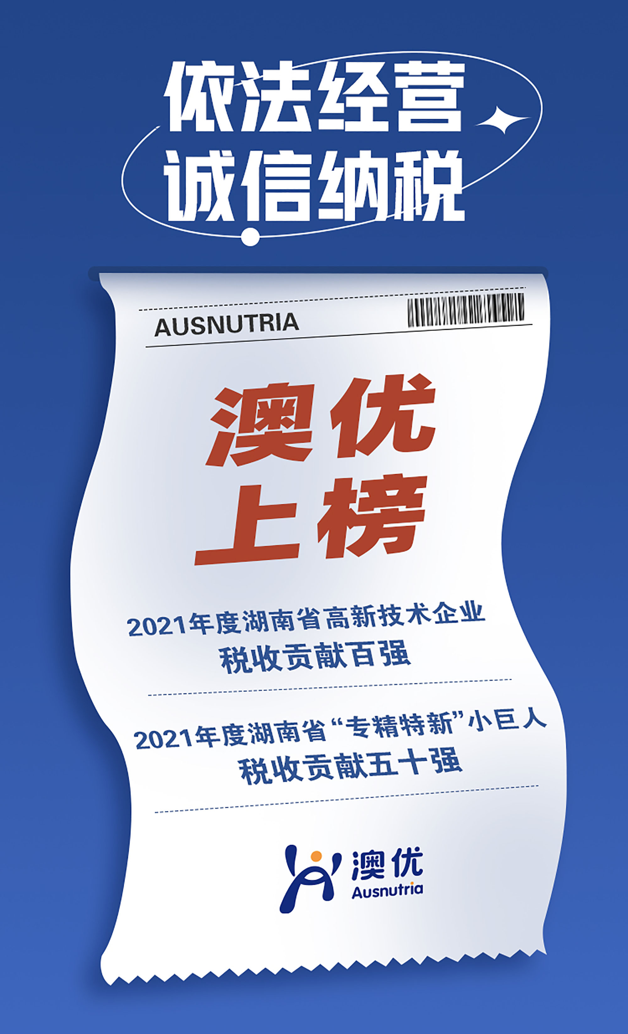 税收就像是国家的能量站,交通出行、医疗教育、国防科研等等,都离不开税收能量站的支撑。澳优始终秉承着依法经营、诚信纳税的理念。2021年,澳优实现营收88.73亿元,在长沙望城纳税超过7亿元。自2017年起,澳优连续五年蝉联“望城第一纳税大户”。