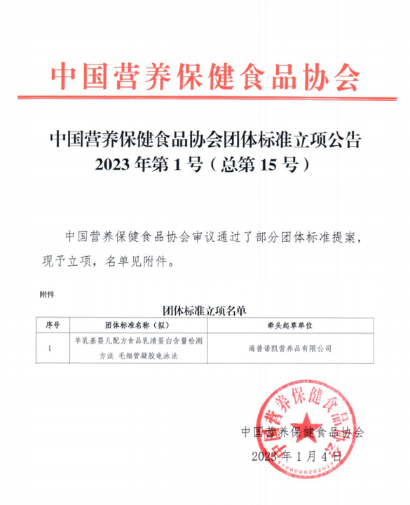 近日,中国营养保健食品协会发布团体标准立项公告,公告审议通过了部分团体标准提案。其中,由澳优旗下羊奶粉品牌佳贝艾特联合中国检验检疫科学研究院(下称“中国检科院”)起草起草的团体标准“羊乳基婴儿配方食品乳清蛋白含量检测方法 毛细管凝胶电泳法”(暂定标准名称)获批立项,再次凸显了佳贝艾特在羊乳制品研究方面的专业实力。