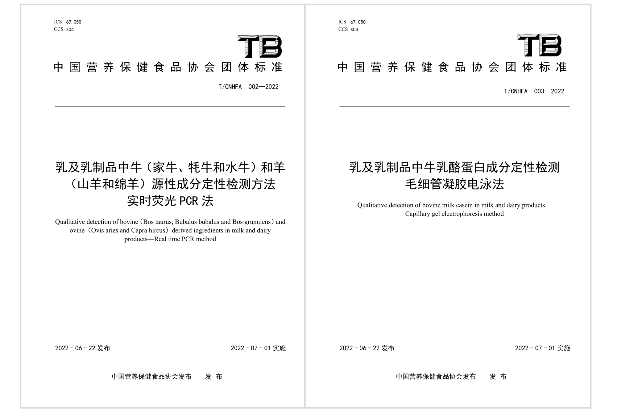 2022年6月,佳贝艾特与中国检科院共同起草的两项团体标准发布