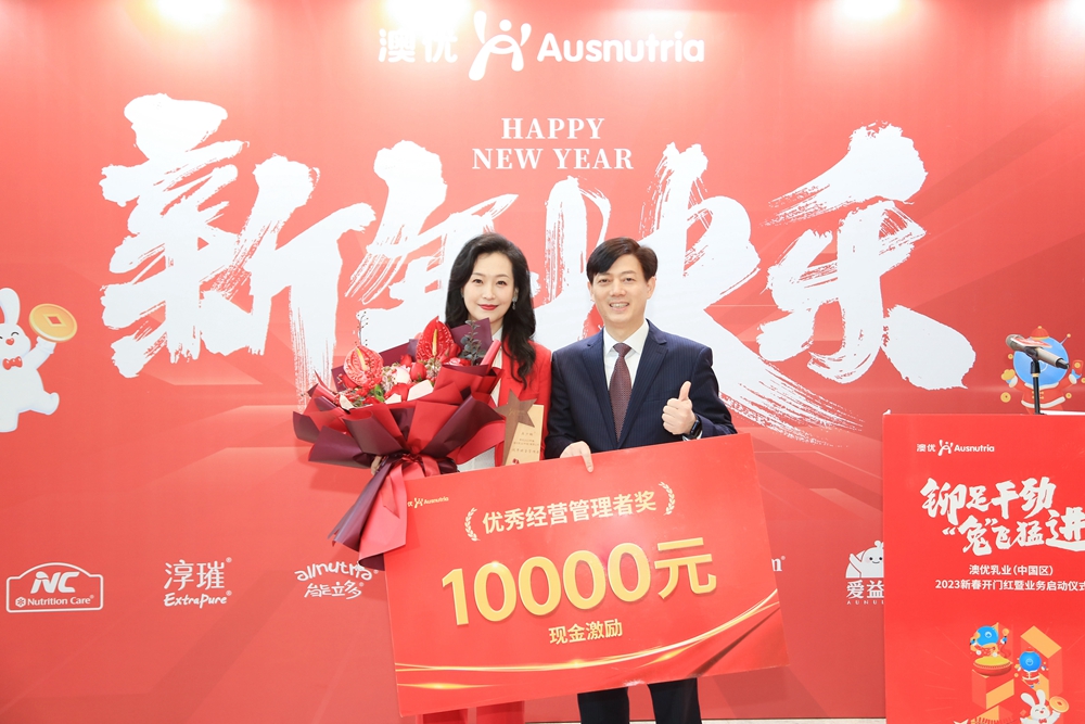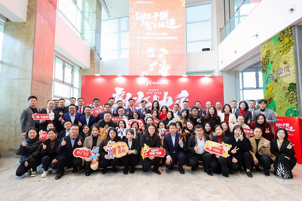 1月29日,澳优乳业(中国区)2023新春开门红暨业务启动仪式在澳优全球总部大楼启动。活动以线上线下相结合的方式举行。全体澳优人欢聚一堂,共同按下“开工键”,以蓬勃的姿态启航新的一年。