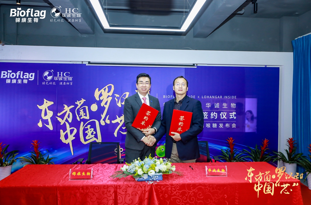 会上,华诚生物董事长黄华学与澳优中国区副总裁、锦旗生物董事长刘学聪共同签署战略合作协议。据了解,锦旗生物与华诚生物均成立于2008年,已分别在益生菌及罗汉果两个细分领域构建了集科研、生产、销售于一体的全产业链,目前已处于行业领先地位。未来,双方将基于相通的创新精神和经营理念,持续推进罗汉果代糖及益生菌综合解决方案,引领行业天然减糖“芯”风向。