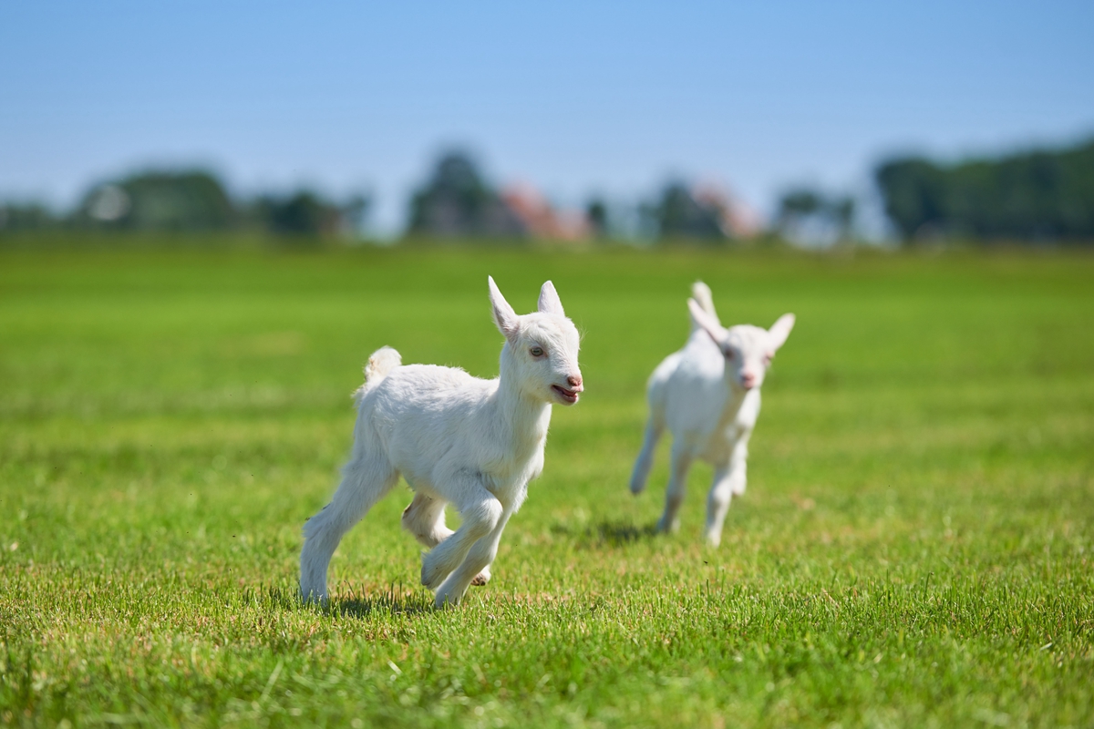 △在澳优荷兰牧场快乐奔跑的小山羊。