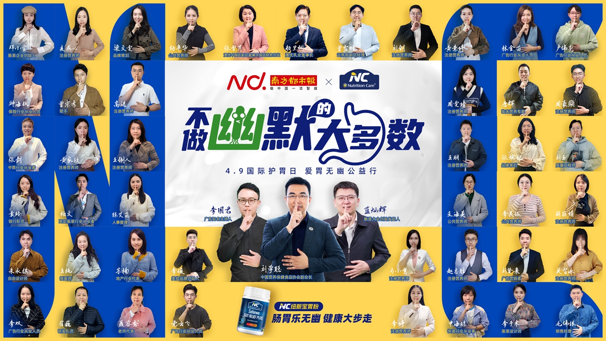 4月9日,在第18个“国际护胃日”来临之际,澳优旗下营养品品牌NC纽新宝携手权威媒体南方都市报,发起一场“不做幽默的大多数”爱胃无“幽”公益活动,关爱全民胃健康,助力实现健康无“幽”!