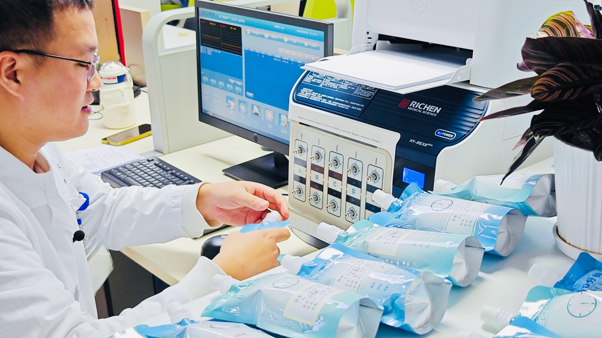 △中山大学孙逸仙纪念医院消化内科医生马明哲为企业员工进行幽门螺杆菌筛查。