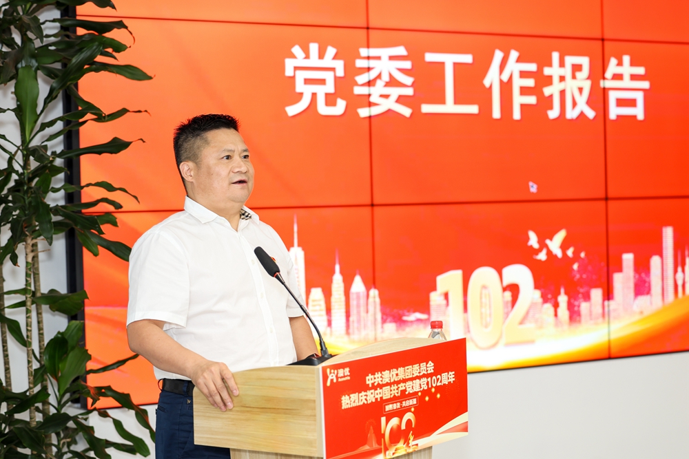 为庆祝中国共产党成立102周年,弘扬伟大建党精神,6月28日,澳优集团党委召开2023年迎庆“七一”党员大会。长沙市委两新工委指派党建指导员刘世刚,原市派党建指导员万长锌,望城区委党校教务部主任谭胜副教授,望城经开区企业党委副书记、组织工作局副局长王琳,澳优董事长颜卫彬,澳优集团党委书记、中国区副总裁刘育标,澳优集团党委副书记、中国区副总裁刘学聪及各党支部党员、发展对象、积极分子等近100人参加会议。大会由澳优集团党委纪检委员、爱益森总经理肖罗主持。