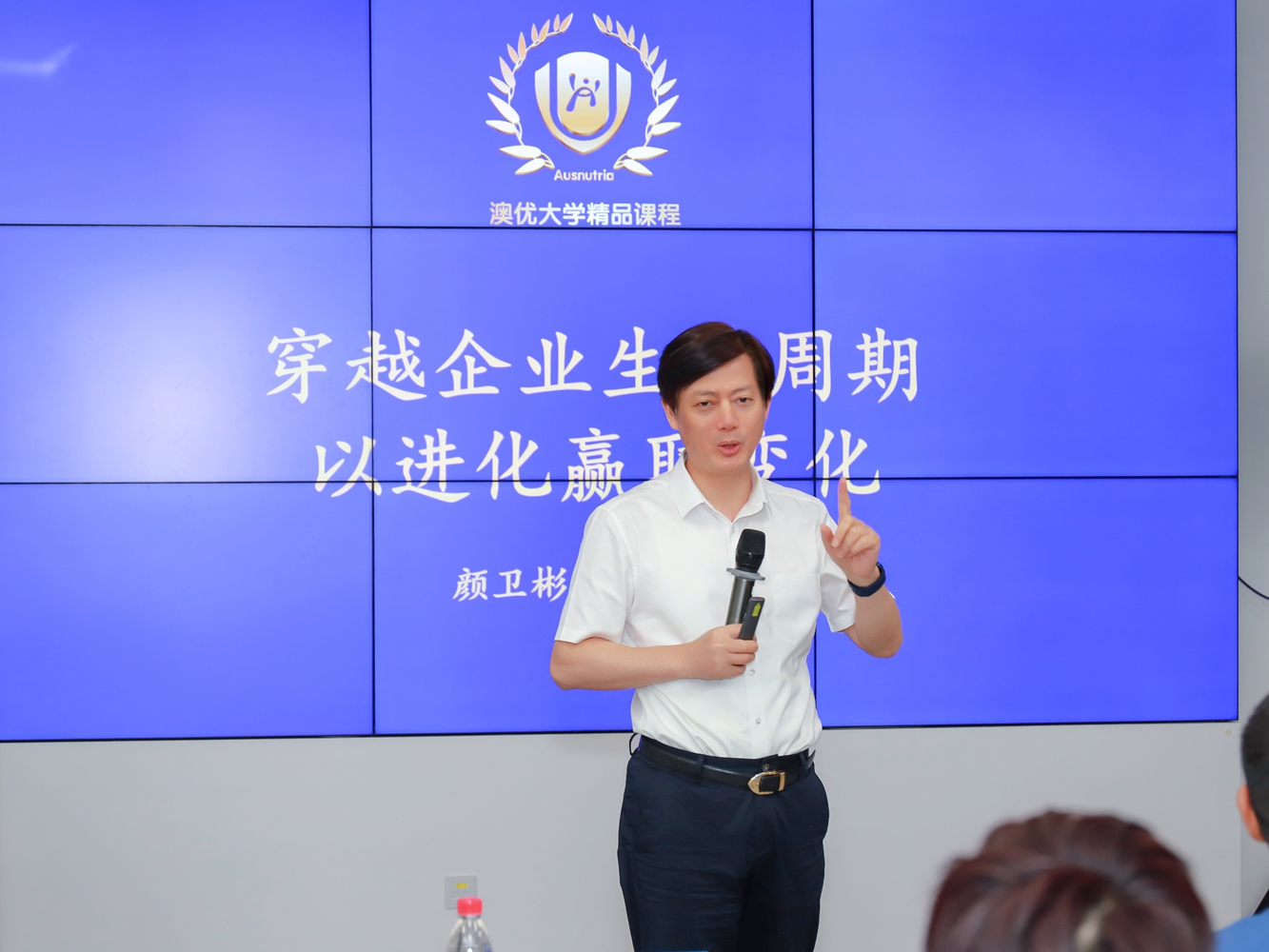 △湖南省工商联副主席、湘商公益基金会理事长、澳优董事长颜卫彬作《穿越企业生命周期,以进化赢取变化》分享。