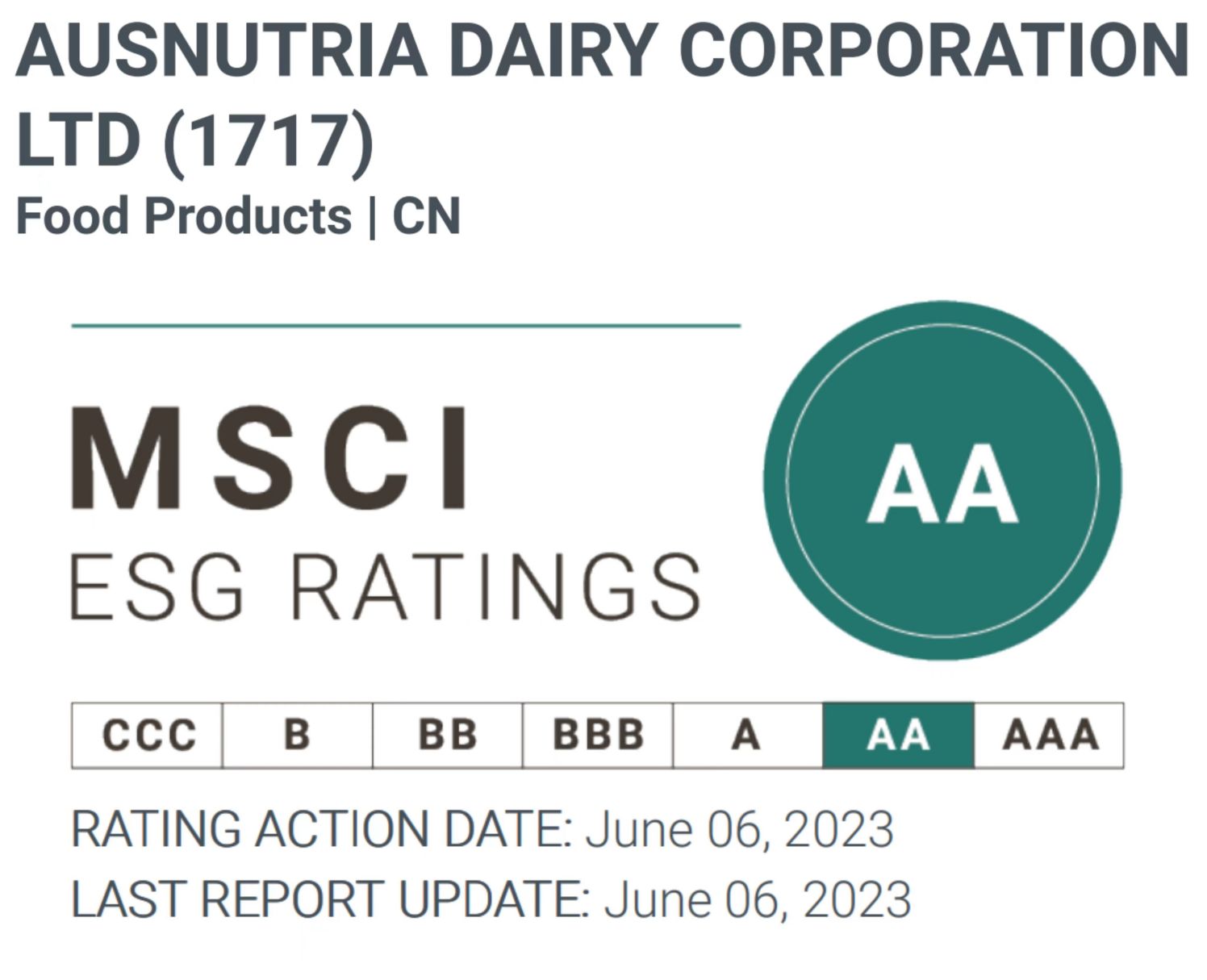 自2016年起,澳优已连续八年发布关于公司业务运营与可持续发展紧密结合的报告。2023年,得益于在ESG领域的深入实践,澳优的MSCI ESG评级由A级提升至AA级,成为中国食品行业第一家获评为AA级的企业,可持续发展表现获得行业和社会的广泛认可。