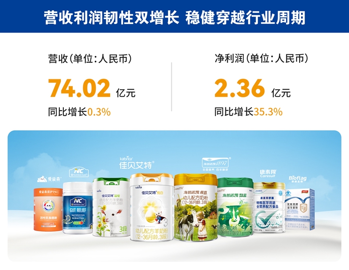 2024年,面对世界经济增长动能及国内有效需求不足的内外部经济形势,澳优稳步推进“奶粉+营养品”全家营养战略,进一步强化“全球羊奶第一品牌”的领先地位,通过强科创、拓市场、提效能、固根基等多维举措,在婴配市场整体收窄的背景下,守住了市场份额,实现营收逆势上扬、利润大幅增长,以韧性生长穿越行业周期。