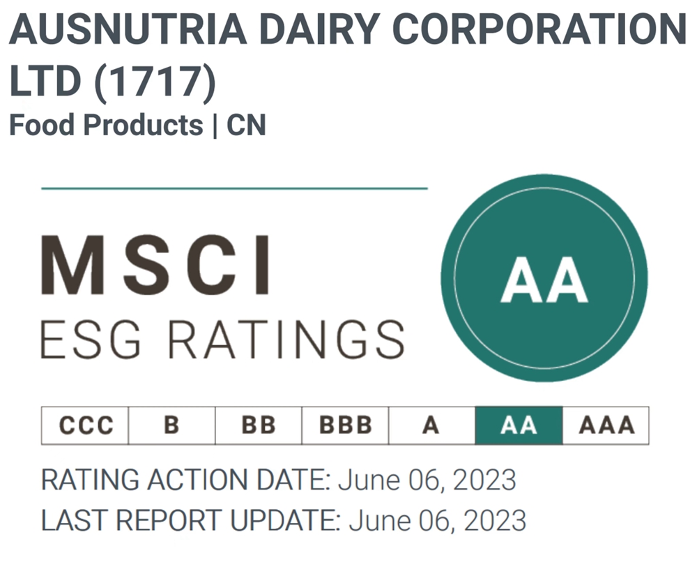 作为一家国际化营养健康食品企业,澳优将可持续发展的核心理论和标准全面融入企业治理中,建立了由董事会、可持续发展委员会、可持续发展工作小组、地方团队组成的四层可持续发展治理体系,并以联合国可持续发展目标(UNSDGs)为引导方向,围绕“更优生活”“更优营养”“更优环境”的可持续发展基石,携手各方力量打造社会与生态的共融共赢。2023年6月,澳优获评国际权威指数机构摩根士丹利资本国际公司MSCI ESG评级AA级,成为中国食品行业唯一一家获评为AA级的企业。